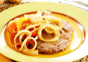 No mesmo óleo em que o bife foi frito, frite as cebolas
