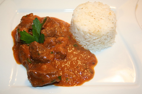 Acrescente o caldo de carne dissolvido na água quente, o vinho, o suco de limão e a páprica Doce